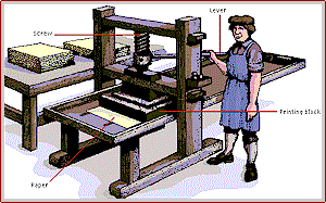One of life-changing inventions was the printing press.Johann Gutenberg created a printing press with moveable metal type containing letters,numbers,and symbols,and in1454,printed multiple copies of a letter ,The invention of the printing press allowed millions of inexpensive paper copies to be made quickly and easily,Gutenberg's press was the photocopy machine of the 15th century.Today, printing presses allow millions of books,newspapers,and magazines to be mass produced every day. This picture is at(http://ideafinder/facts/story/story039.htm) | ![]() |
